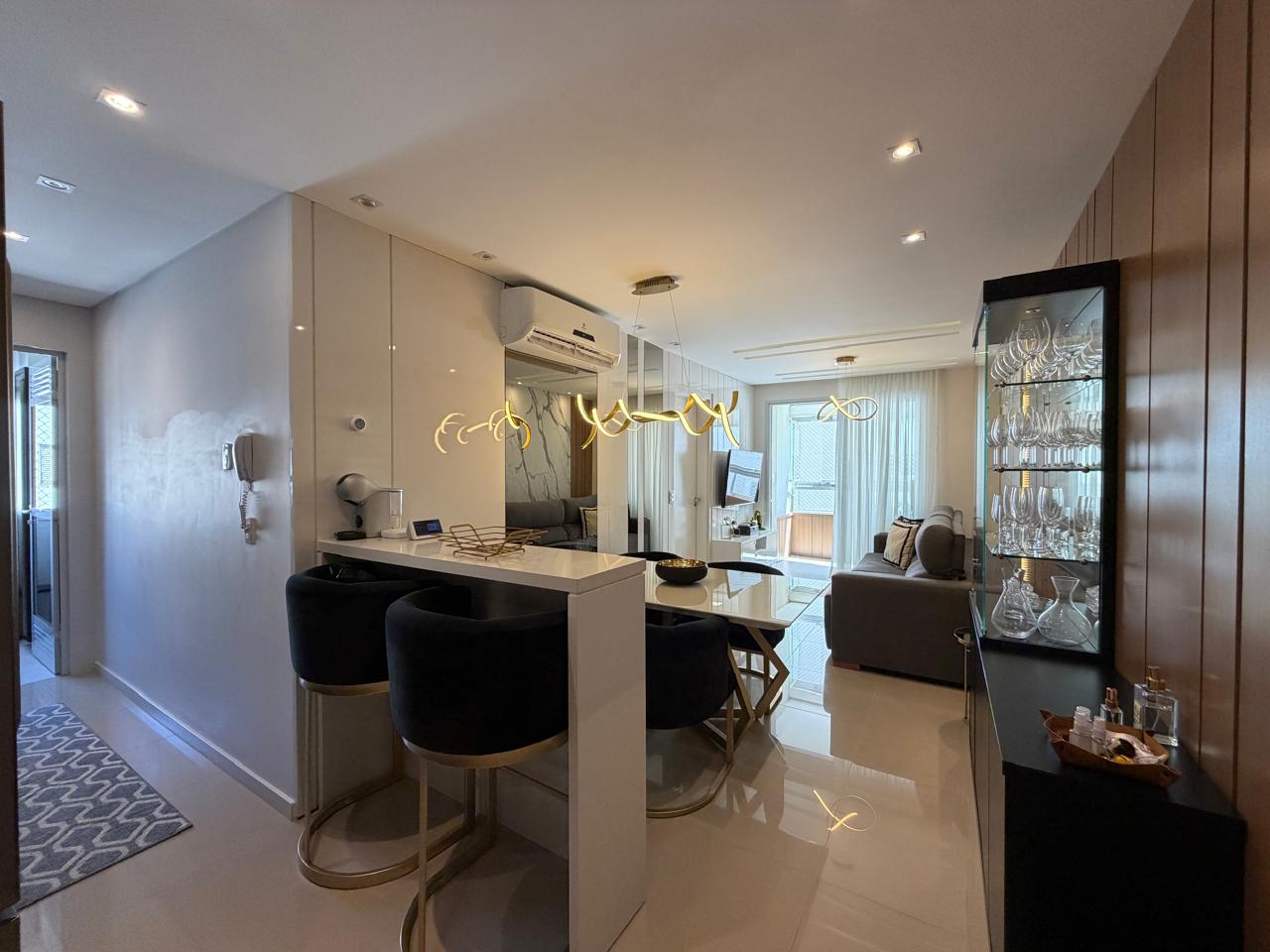 Apartamento com 69m² privativos, muito bem mobiliado e decorado, com ambientes bem distribuídos, iluminados e funcionais. Conta com 2 dormitórios, sendo 1 suíte, sala integrada à cozinha planejada, sacada com churrasqueira a carvão, banheiro social e 1 vaga de garagem privativa. Mobiliado, Equipado e Climatizado, saindo apenas itens pessoais e camas.