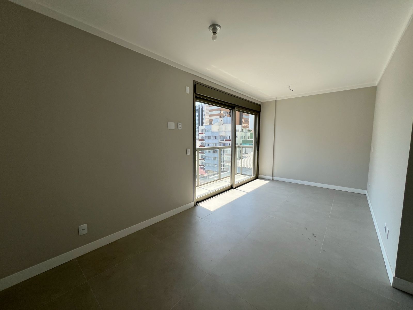 A suíte master conta com sacada exclusiva.