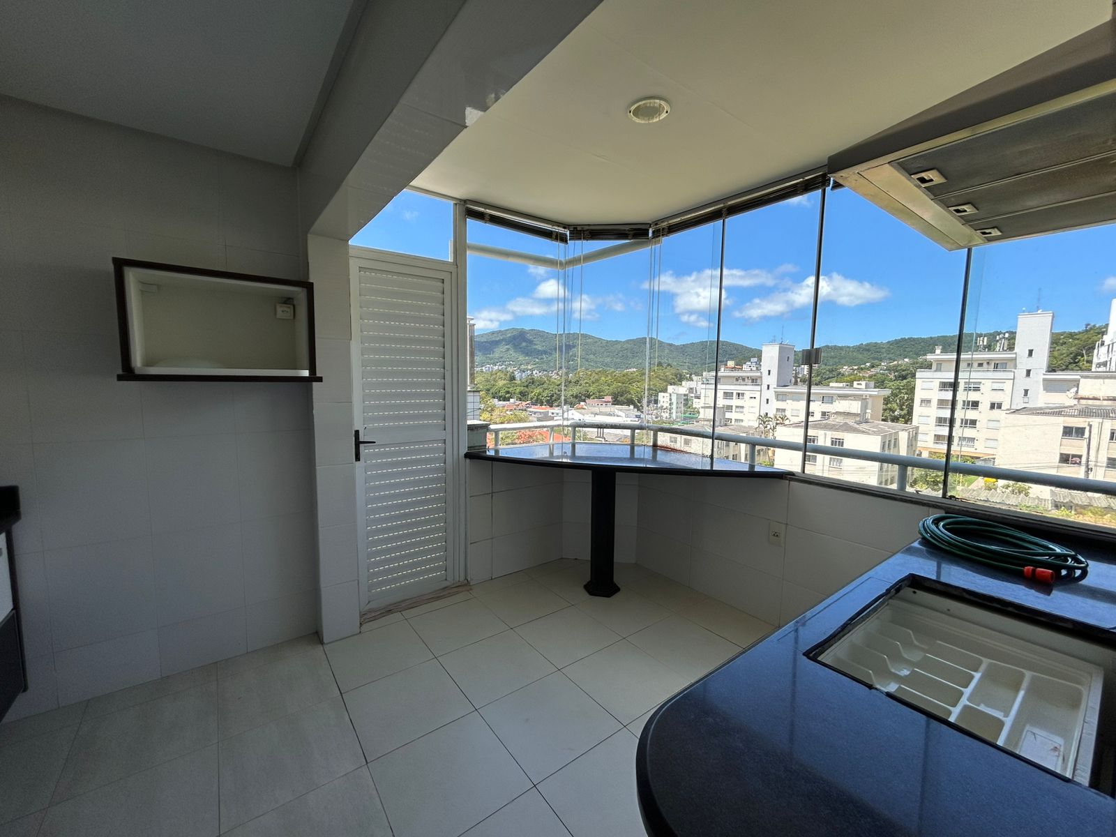 Possui vista livre em todos os ambientes, voltada para o bairro do Córrego Grande, garantindo iluminação natural e uma sensação constante de amplitude.