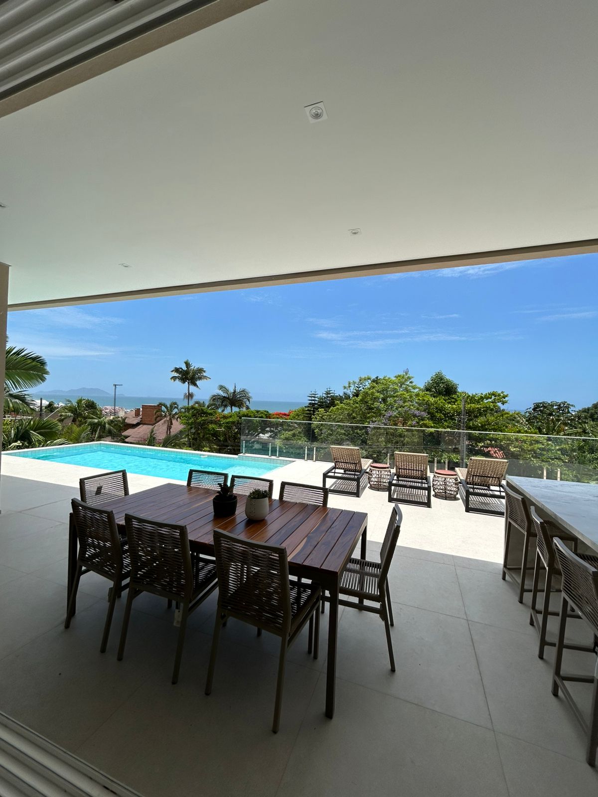 O grande destaque fica por conta da vista permanente para o mar e para a Mata Atlântica, com integração total à exuberante natureza da Praia Brava — um verdadeiro refúgio com cenário permanente.